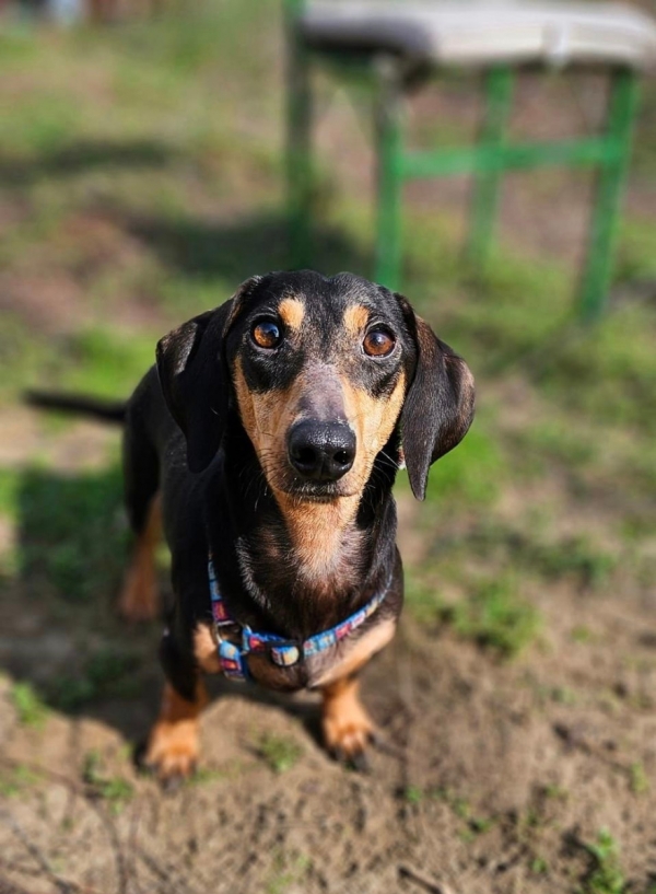 Der kleine Dackel-Mann wurde in Ungarn im Tierheim abgeben, weil seine Menschen umgezogen sind.