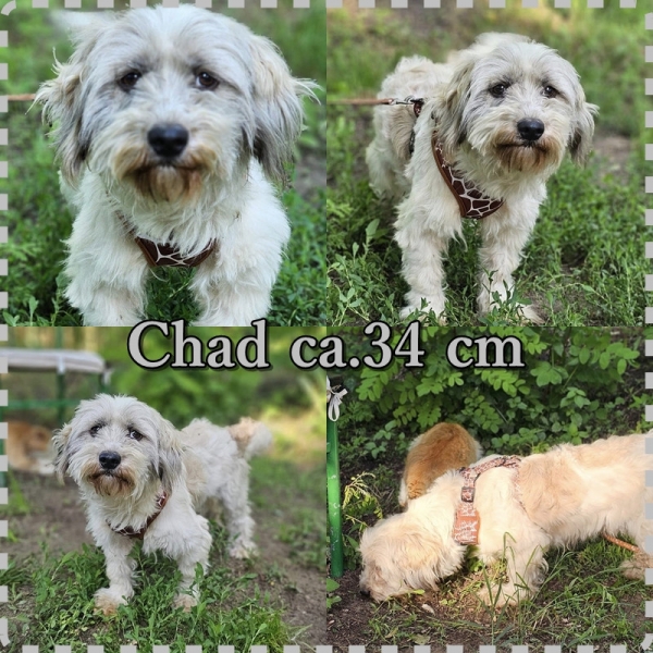Chad, Rüde, Havaneser Mischling, geboren ca. 15. Oktober 2020 (von einem ungarischen Tierarzt geschätzt), kastriert, Schulterhöhe: ca. 34 cm und ca. z.Z. 7-8 Kilo (Hals: 28-31 cm, Brust: 44-46 cm), Vermittlung zu Katzen: ja, wenn diese das Leben mit Hunden kennen. Auf Wunsch wird auch extra nochmals getestet, nur eine Garantie gibt es nicht.