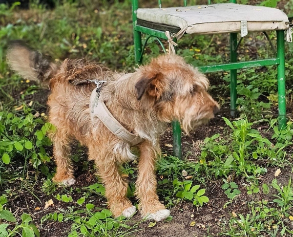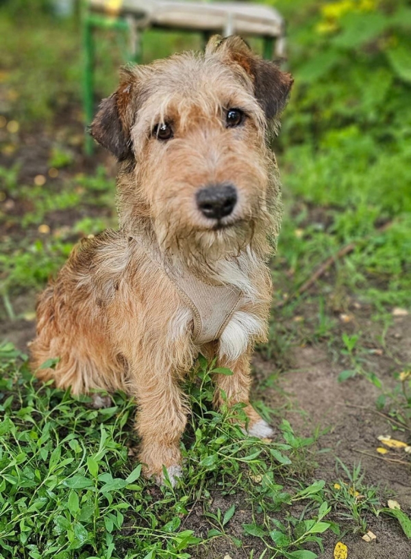 Peanut, Rüde, Irish Terrier Mischling, geboren ca. 15. Mai 2023 (von einem ungarischen Tierarzt geschätzt), kastriert, Schulterhöhe: ca. 37 cm und ca. z.Z. 7,5-8 Kilo (Hals: 28-31 cm, Brust: 45-49 cm), Vermittlung zu Katzen: ja, wenn diese das Leben mit Hunden kennen. Auf Wunsch wird auch extra nochmals getestet, nur eine Garantie gibt es nicht.