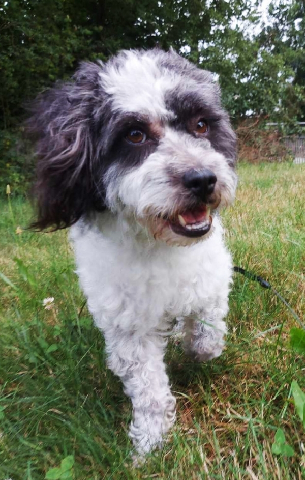 Kata, Hündin, Pudel Mischling, geboren ca. 01. Oktober 2021, kastriert, Schulterhöhe: ca. 35 cm und z.Z. ca. 7 Kilo, Vermittlung zu Katzen: ja, wenn diese das Leben mit Hunden kennen. Kata hat eine verkürzte Rute !