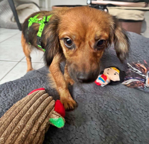Ida, Hündin, Dackel Mischling, geboren ca. 01. Januar 2023, kastriert, Schulterhöhe: ca. 28 cm und ca. z.Z. 4-4,5 Kilo, Vermittlung zu Katzen: nein