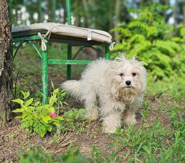 Stan, Rüde, Mischling, geboren 07. Juli 2023, kastriert, Schulterhöhe: ca. 29 cm und ca. z.Z. 4-4,5 Kilo (Hals: 19-22 cm, Brust: 34-37 cm), Vermittlung zu Katzen: ja, wenn diese das Leben mit Hunden kennen. Stan war in einem ganz verwahrlostem Zustand, bei der Ankunft.