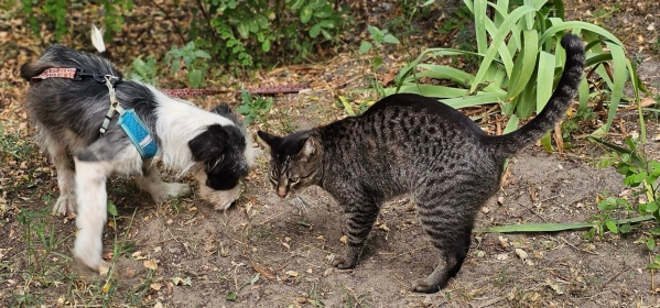 Mit Artgenossen kommt er gut aus und auch mit den Katzen.