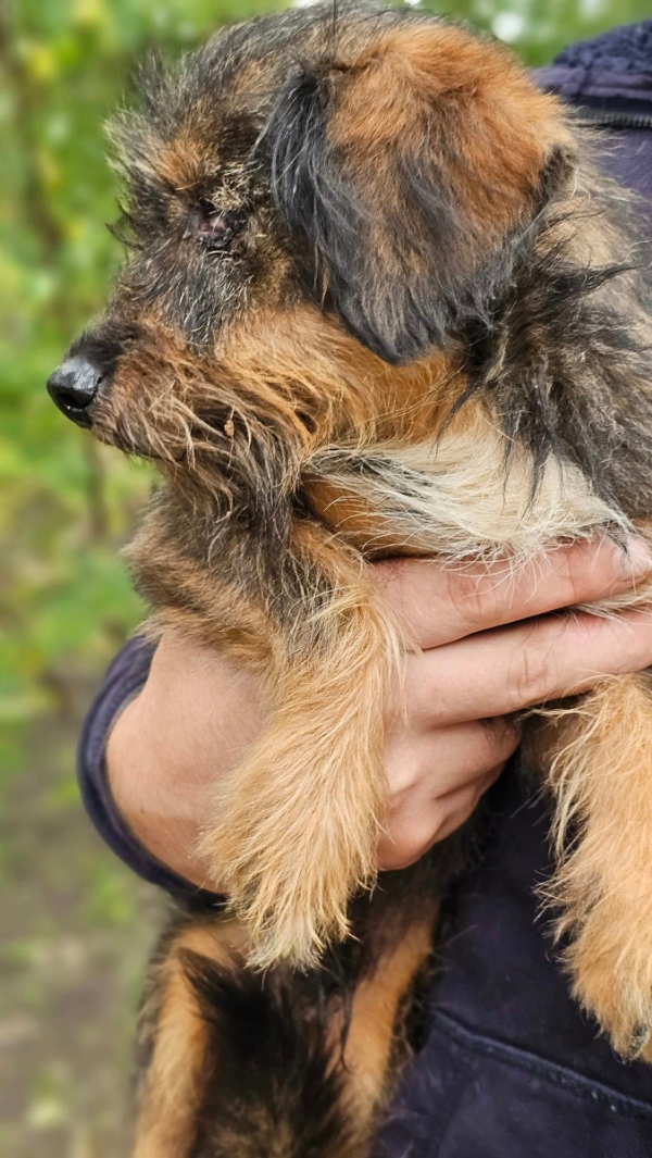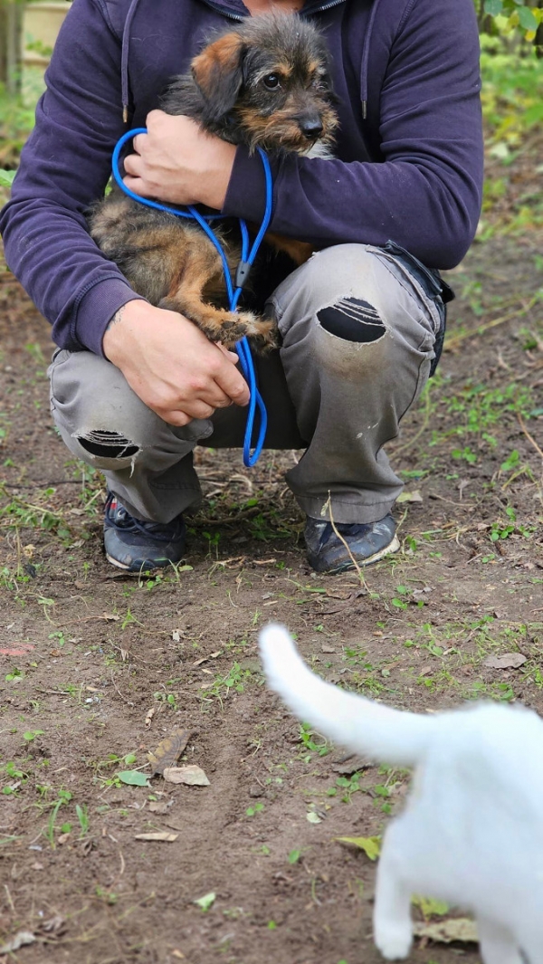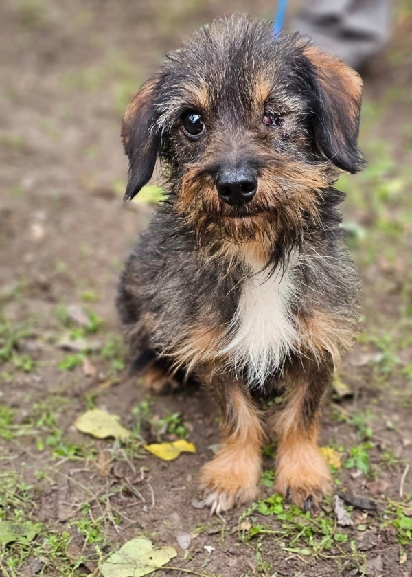 Zassel, Rüde, Dackel Mischling, geboren ca. 03. November 2020 (von einem ungarischen Tierarzt geschätzt), kastriert, Schulterhöhe: ca. 29 cm und ca. z.Z. 4,7-5,2 Kilo (Hals: 24-27 cm, Brust: 39-43 cm), Vermittlung zu Katzen: ja, wenn diese das Leben mit Hunden kennen. Auf Wunsch wird auch extra nochmals getestet, nur eine Garantie gibt es nicht. Zassel hat ein tieferliegendes Auge, laut Tierarzt vor Ort ist keine größere Behandlung nötig, außer der normalen Pflege.