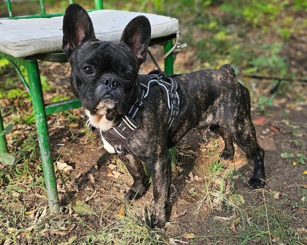 Tassilo, Rüde, Französiche Bulldoggen Mischling, geboren ca. 25. August 2020 (von einem ungarischen Tierarzt geschätzt), kastriert, Schulterhöhe: ca. 33 cm und ca. z.Z. 7,5-8,5 Kilo (Hals: 34-38 cm, Brust: 53-57 cm), Vermittlung zu Katzen: ja, wenn diese das Leben mit Hunden kennen. Auf Wunsch wird auch extra nochmals getestet, nur eine Garantie gibt es nicht.