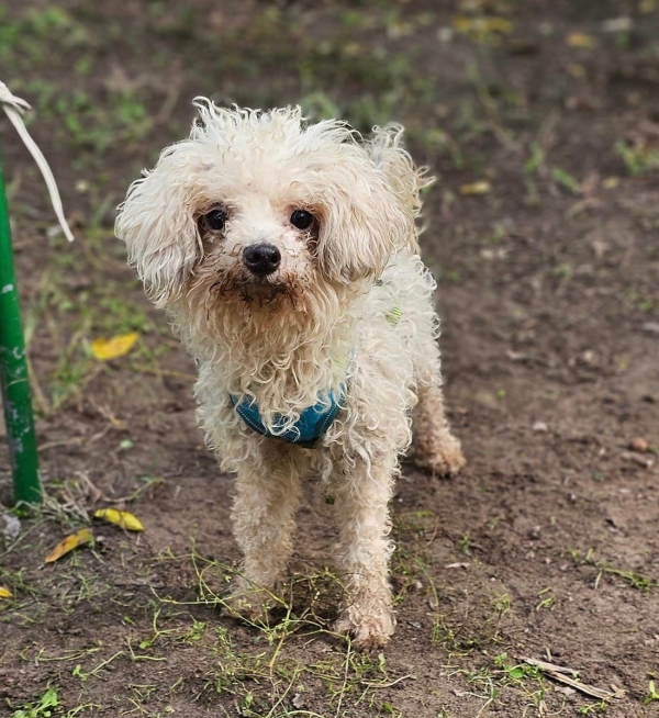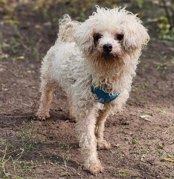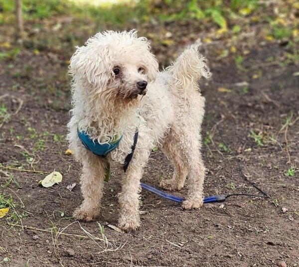 Luam, Rüde, Bologneser Mischling, geboren ca. 21. Oktober 2020 (von einem ungarischen Tierarzt geschätzt), kastriert, Schulterhöhe: ca. 28 cm und ca. z.Z. 3,8-4,8 Kilo (Hals: 20-24 cm, Brust: 33-37 cm), Vermittlung zu Katzen: ja, wenn diese das Leben mit Hunden kennen. Auf Wunsch wird auch extra nochmals getestet, nur eine Garantie gibt es nicht.