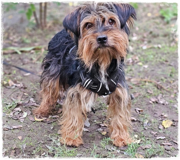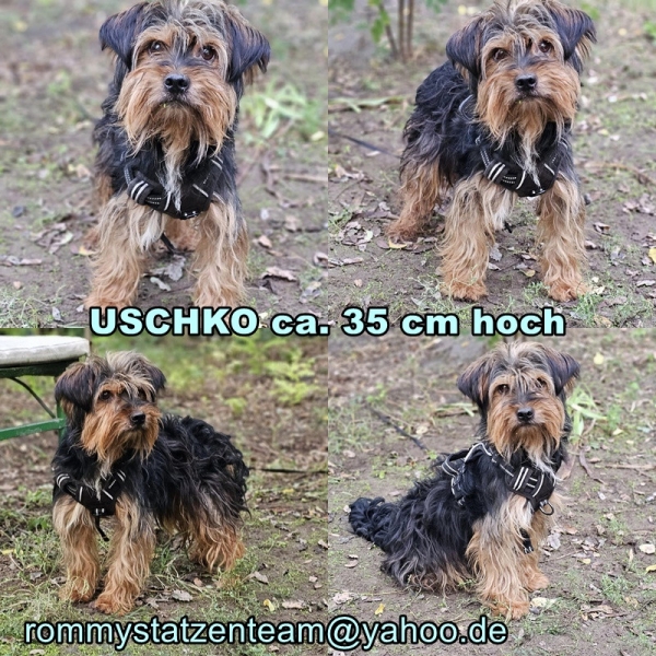 Uschko, Rüde, Yorkshire Terrier Mischling, geboren ca. 04. Januar 2019 (von einem ungarischen Tierarzt geschätzt), kastriert, Schulterhöhe: ca. 35 cm und ca. z.Z. 5,5-7 Kilo (Hals: 23-27 cm, Brust: 35-40 cm), Vermittlung zu Katzen: ja, wenn diese das Leben mit Hunden kennen. Auf Wunsch wird auch extra nochmals getestet, nur eine Garantie gibt es nicht. Uschko wurde mit Doxycyclin behandelt.