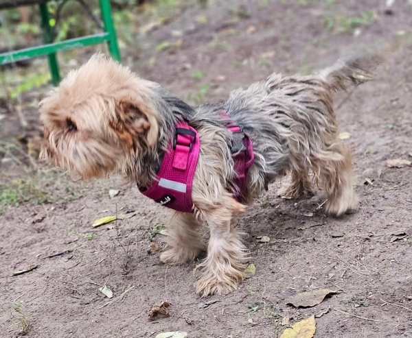 Kelja, Hündin, Yorkshire Terrier Mischling, geboren ca. 10. Oktober 2023 (von einem ungarischen Tierarzt geschätzt), kastriert, Schulterhöhe: ca. 27 cm und ca. z.Z. 3,3-3,9 Kilo (Hals: 24-28 cm, Brust: 38-42 cm), Vermittlung zu Katzen: ja, wenn diese das Leben mit Hunden kennen.