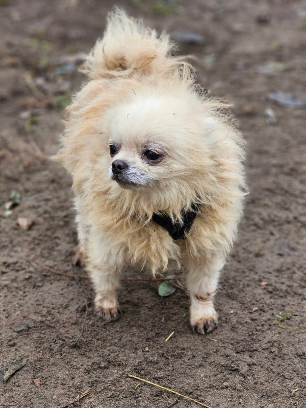 Rosco, Rüde, Spitz Mischling, geboren ca. 16. September 2020 (von einem ungarischen Tierarzt geschätzt), kastriert, Schulterhöhe: ca. 26 cm und ca. z.Z. 2,5-3 Kilo (Hals: 22-25 cm, Brust: 38-43 cm), Vermittlung zu Katzen: ja, wenn diese das Leben mit Hunden kennen. Auf Wunsch wird auch extra nochmals getestet, nur eine Garantie gibt es nicht. Er hat einige Macken an den Ohren!