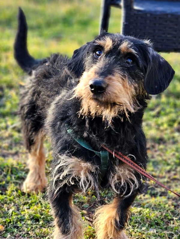Frido, Rüde, Mischling, geboren ca. 01. Januar 2022 (von einem ungarischen Tierarzt geschätzt), reist kastriert, Schulterhöhe: ca. 33 cm und ca. z.Z. 5-6 Kilo (Hals: 28-32 cm, Brust: 49-53 cm), Vermittlung zu Katzen: ja, wenn diese das Leben mit Hunden kennen. Auf Wunsch wird auch extra nochmals getestet, nur eine Garantie gibt es nicht.