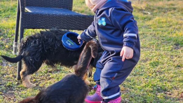 Lange Spaziergänge und Schnüffelrunden, sowie etwas Denksport, stärkt die Bindung und macht Frido zufrieden.