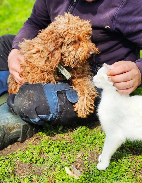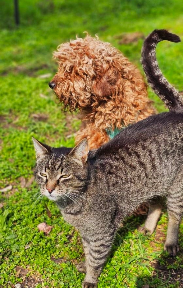 Für die vorhandenen Katzen, die im Tierheim leben, interessiert er sich nicht großartig und bedrängt sie nicht und es gibt keine Probleme im Zusammenleben mit ihnen.