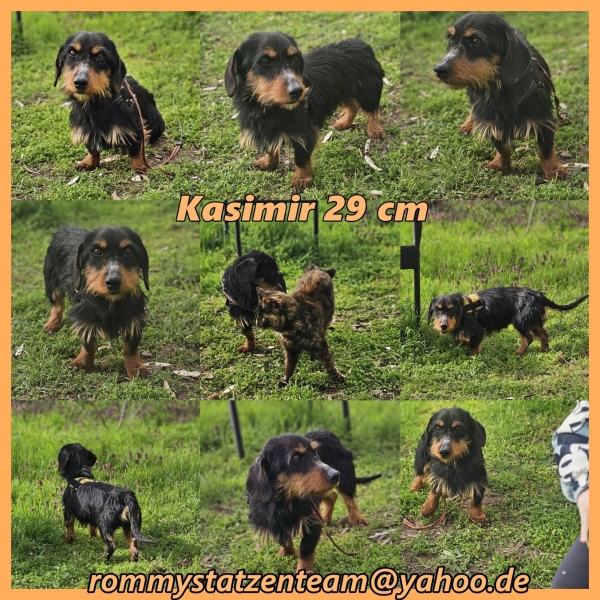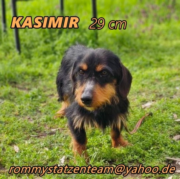 Kasimir, Rüde, Dackel Mischling, geboren ca. 12. September 2021 (von einem ungarischen Tierarzt geschätzt), reist kastriert, Schulterhöhe: ca. 29 cm und ca. z.Z. 5-6 Kilo-noch zu dünn-(Hals: 24-27 cm, Brust: 43-47 cm), Vermittlung zu Katzen: ja, wenn diese das Leben mit Hunden kennen. Auf Wunsch wird auch extra nochmals getestet, nur eine Garantie gibt es nicht.