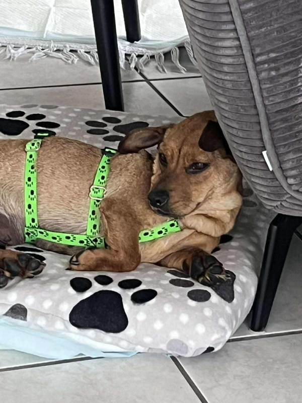 Erst kurze Zeit wohnt das kleine Dackelmädel in der Pflegestelle und darf dort besucht werden.