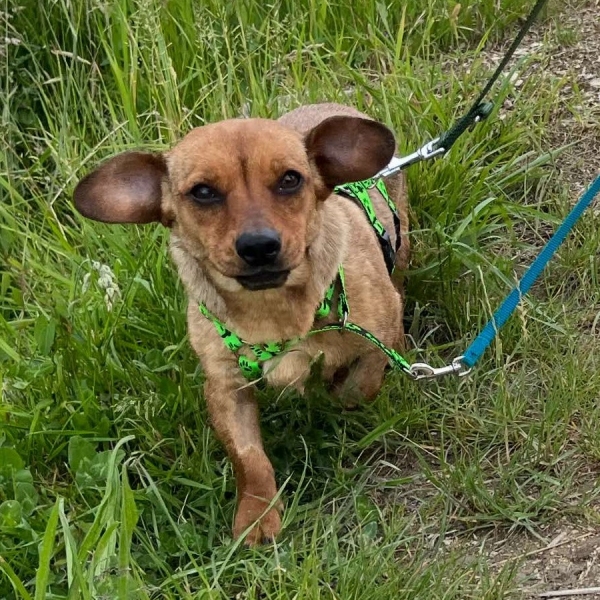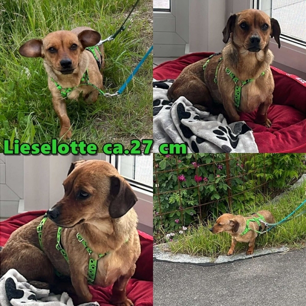 Lieselotte, Hündin, Dackel Mischling, geboren ca. 03. Januar 2024, kastriert, Schulterhöhe: ca. 27 cm und ca. z.Z. 6 Kilo, Vermittlung zu Katzen: ja, wenn diese das Leben mit Hunden kennen.