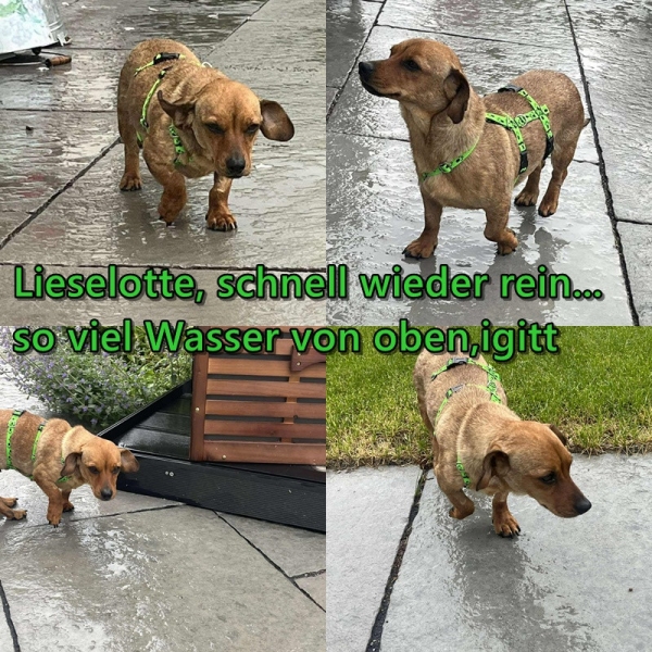 In das dortige Rudel hat sich Lieselotte in Windeseile integriert, sie lebt friedlich mit ihren Artgenossen und dem Kater zusammen.