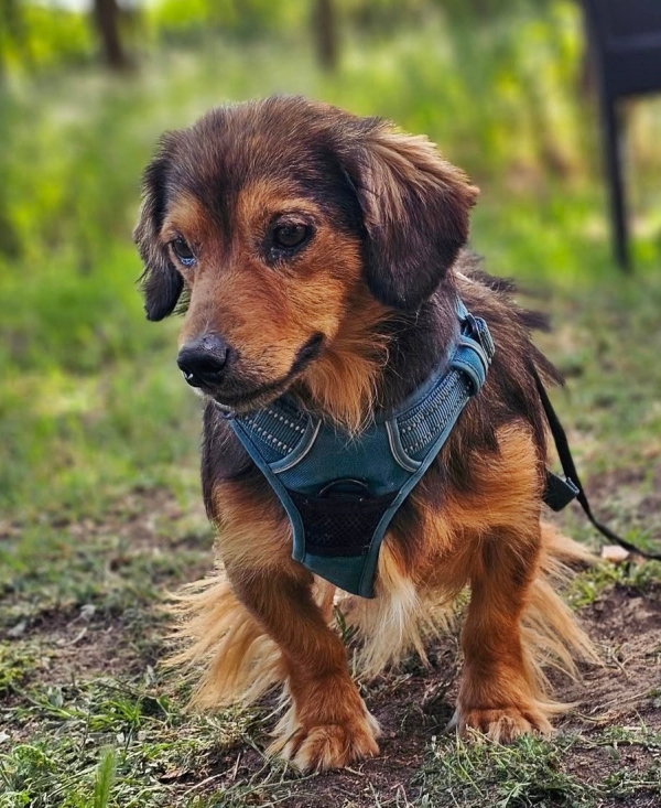 Jeno, Rüde, Dackel Mischling, geboren ca. 01. August 2022 (von einem ungarischen Tierarzt geschätzt), reist kastriert, Schulterhöhe: ca. 34 cm und ca. z.Z. 6,7-7,7 Kilo (Hals: 26-30 cm, Brust: 48-52 cm), Vermittlung zu Katzen: ja, wenn diese das Leben mit Hunden kennen. Auf Wunsch wird auch extra nochmals getestet, nur eine Garantie gibt es nicht.