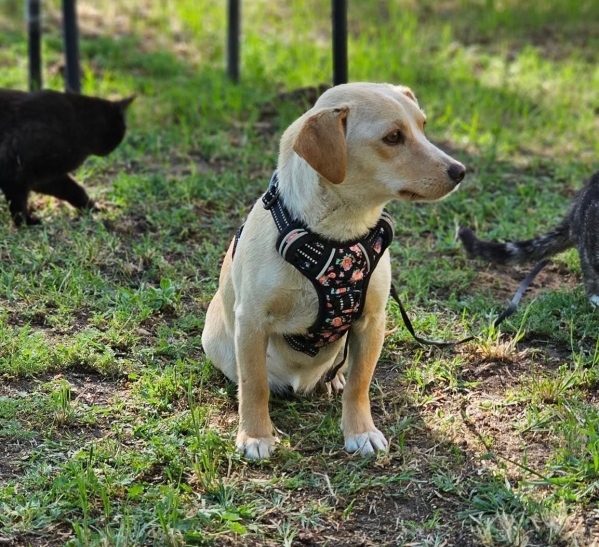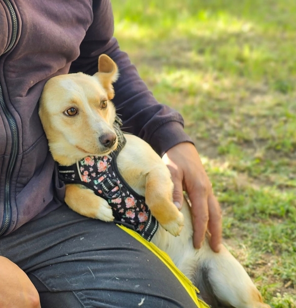Suana, Hündin, Mischling, geboren ca. 01. Mai 2024 (von einem ungarischen Tierarzt geschätzt), reist kastriert, Schulterhöhe: ca. 30 cm und ca. z.Z. 5,8-6,8 Kilo (Hals: 25-27 cm, Brust: 46-49 cm), Vermittlung zu Katzen: ja, wenn diese das Leben mit Hunden kennen. Auf Wunsch wird auch extra nochmals getestet, nur eine Garantie gibt es nicht.