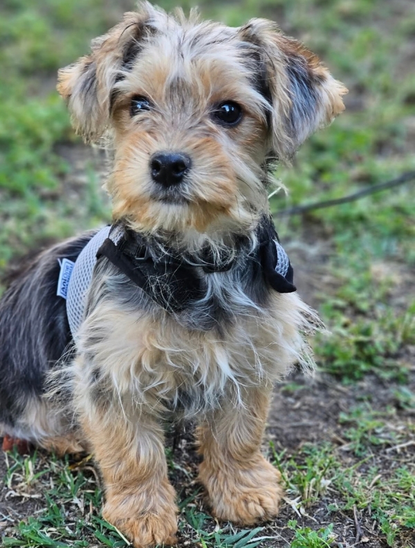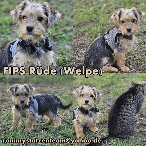 Fips, Rüde, Yorkshire Mischling, geboren ca. 30. Januar 2025 (von einem ungarischen Tierarzt geschätzt), nicht kastriert, Schulterhöhe: ca. 26 cm und ca. z.Z. 2,8 Kilo (Hals: 19-22 cm, Brust: 31-35 cm), Vermittlung zu Katzen: ja, wenn diese das Leben mit Hunden kennen. Auf Wunsch wird auch extra nochmals getestet, nur eine Garantie gibt es nicht.