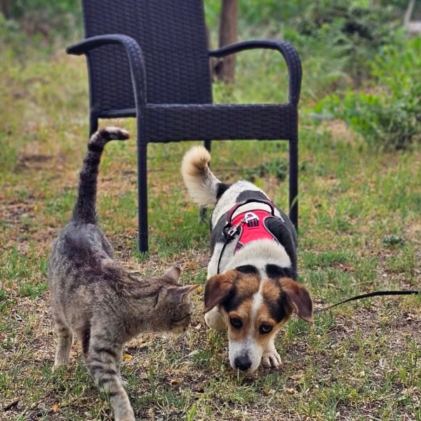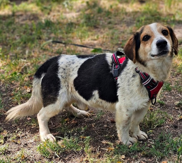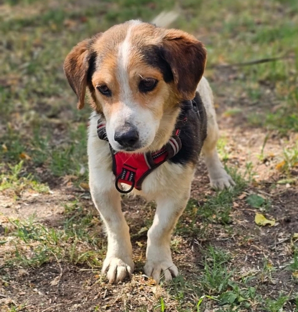 Henson, Rüde, Beagle Mischling, geboren ca. 05. Mai 2019 (von einem ungarischen Tierarzt geschätzt), kastriert, Schulterhöhe: ca. 34 cm und ca. z.Z. 7-8 Kilo (Hals: 33-37 cm, Brust: 51-55 cm), Vermittlung zu Katzen: ja, wenn diese das Leben mit Hunden kennen. Auf Wunsch wird auch extra nochmals getestet, nur eine Garantie gibt es nicht.
