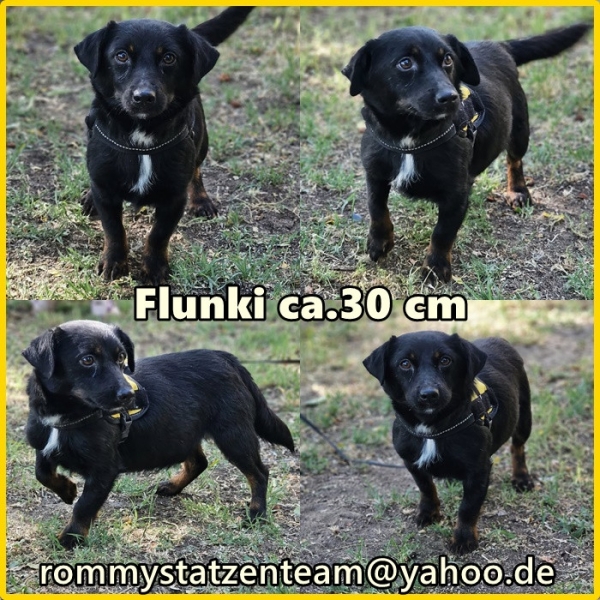 Flunki, Rüde, Mischling, geboren ca. 01. Januar 2024 (von einem ungarischen Tierarzt geschätzt), reist kastriert, Schulterhöhe: ca. 30 cm und ca. z.Z. 4,9-5,9 Kilo (Hals: 23-26 cm, Brust: 45-49 cm), Vermittlung zu Katzen: ja, wenn diese das Leben mit Hunden kennen. Auf Wunsch wird auch extra nochmals getestet, nur eine Garantie gibt es nicht.