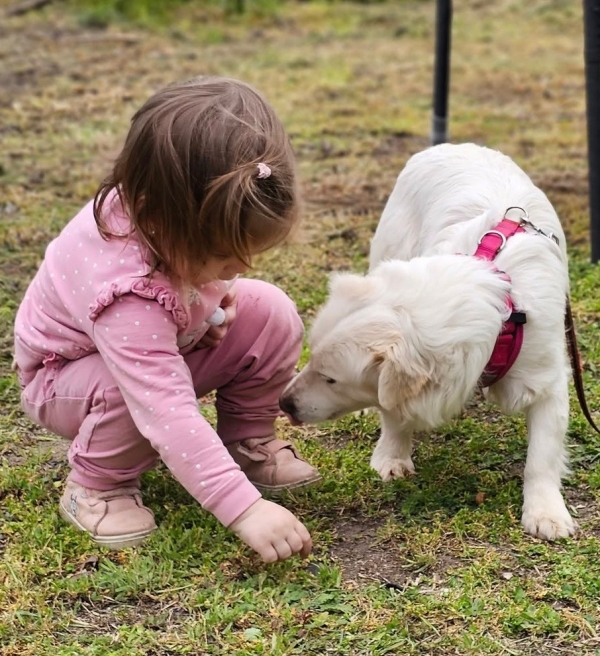 Ob beim Spielen mit Artgenossen oder beim Herumtollen mit größeren Kindern, sie ist stets freundlich und aufgeschlossen und möchte was erleben.