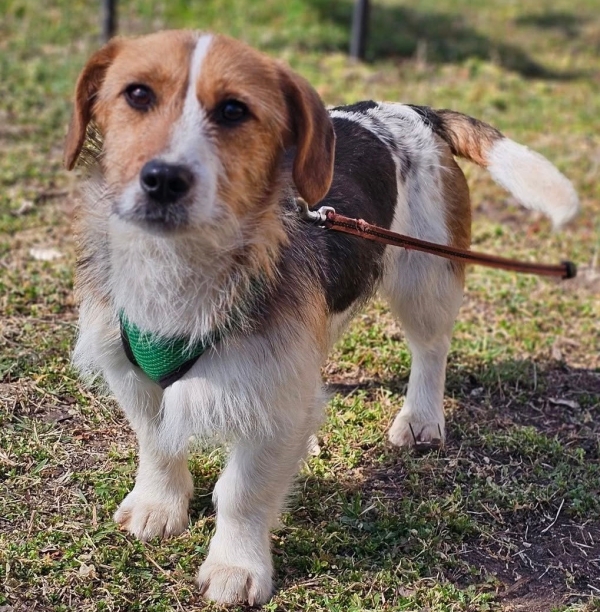 Caramba, Rüde, Beagle Dackel Mischling, geboren ca. 02. Januar 2024 (von einem ungarischen Tierarzt geschätzt), reist kastriert, Schulterhöhe: ca. 29 cm und ca. z.Z. 5,3-6,3 Kilo (Hals: 26-30 cm, Brust: 42-48 cm), Vermittlung zu Katzen: ja, wenn diese das Leben mit Hunden kennen. Auf Wunsch wird auch extra nochmals getestet, nur eine Garantie gibt es nicht.