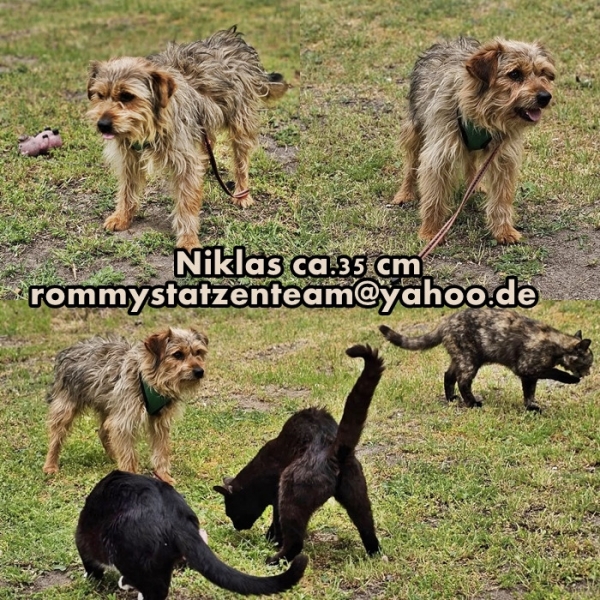 In Niklas ist wahrscheinlich Terrierblut und deshalb sollte eine liebevolle und konsequente Erziehung dazu beitragen, dass er ein sozialverträglicher Hund bleibt bzw. prinzipiell ist er Menschen gegenüber aufgeschlossen und hat Lust, die Welt zu entdecken, braucht aber Anfangs etwas Zeit.