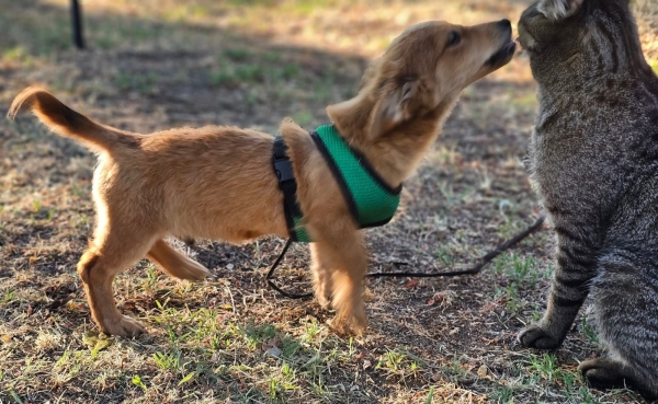 Momentan befindet sich Utzo im Tierheim, wo er mit anderen Hunden und Katzen zusammenlebt und sich prima mit ihnen versteht.