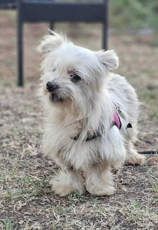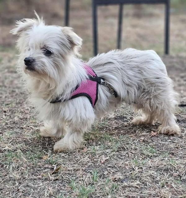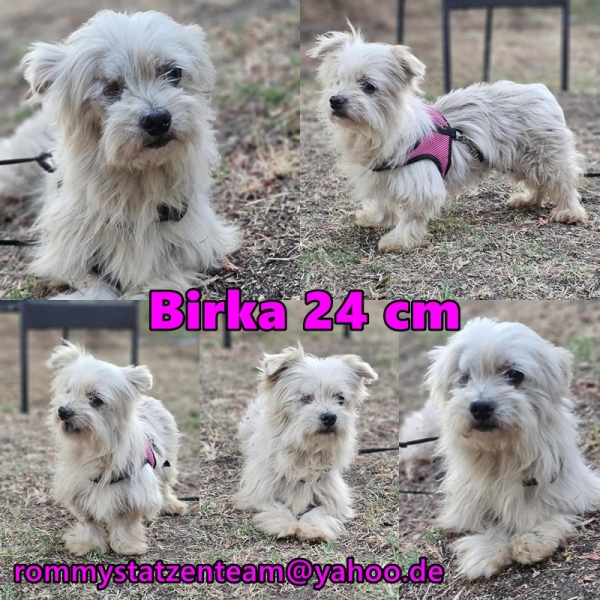 Birka, Hündin, Malteser Mischling, geboren ca. 21. Juli 2017 (von einem ungarischen Tierarzt geschätzt), reist kastriert, Schulterhöhe: ca. 24 cm und ca. z.Z. 2,5-3,5 Kilo (Hals: 21-24 cm, Brust: 34-38 cm), Vermittlung zu Katzen: ja, wenn diese das Leben mit Hunden kennen. Auf Wunsch wird auch extra nochmals getestet, nur eine Garantie gibt es nicht.