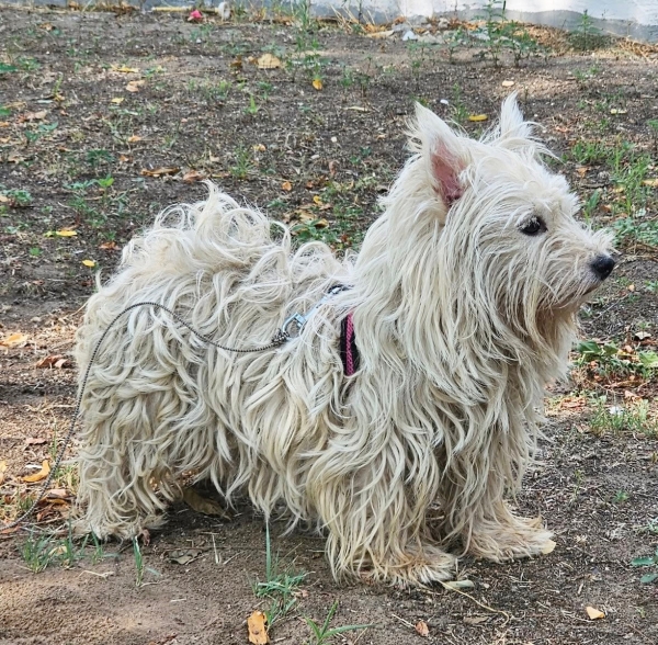 Conchetta, Hündin, West Highland White Terrier Mischling, geboren ca. 18. September 2022 (von einem ungarischen Tierarzt geschätzt), reist kastriert, Schulterhöhe: ca. 28 cm und ca. z.Z. 4,5-5,5 Kilo (Hals: 27-31 cm, Brust: 43-47 cm), Vermittlung zu Katzen: ja, wenn diese das Leben mit Hunden kennen. Auf Wunsch wird auch extra nochmals getestet, nur eine Garantie gibt es nicht.