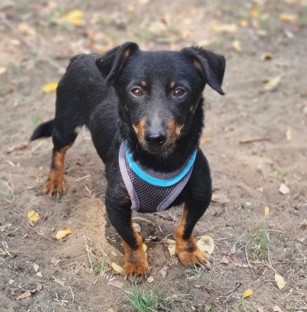 Pimpf, Rüde, Pinscher Mischling, geboren ca. 01. August 2022, kastriert, Schulterhöhe: ca. 27 cm und ca. z.Z. 2,8 Kilo, Vermittlung zu Katzen: ja, wenn diese das Leben mit Hunden kennen.