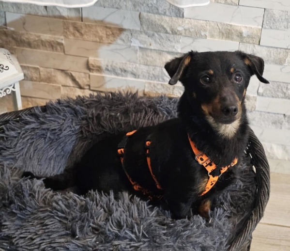 Er ist ein lebenslustiger und neugieriger, agiler Hundemann, der noch einiges an konsequenter Erziehung braucht.