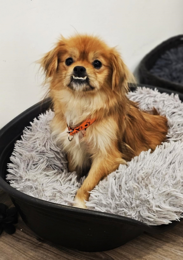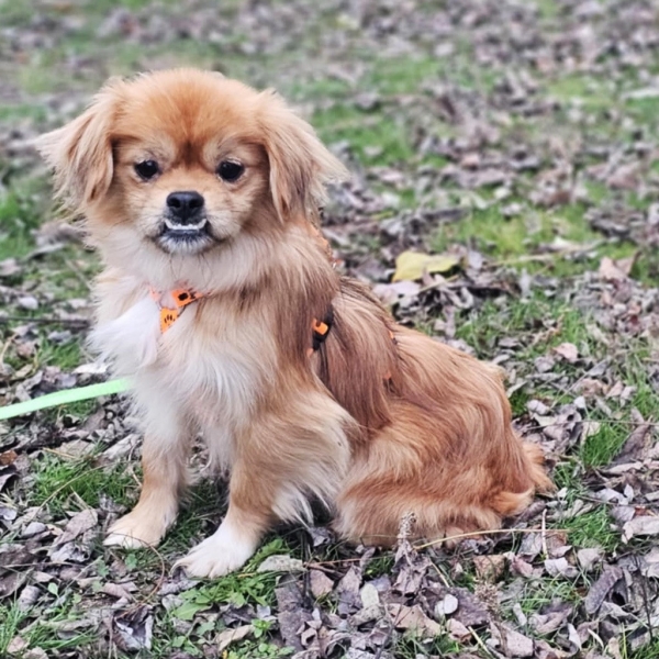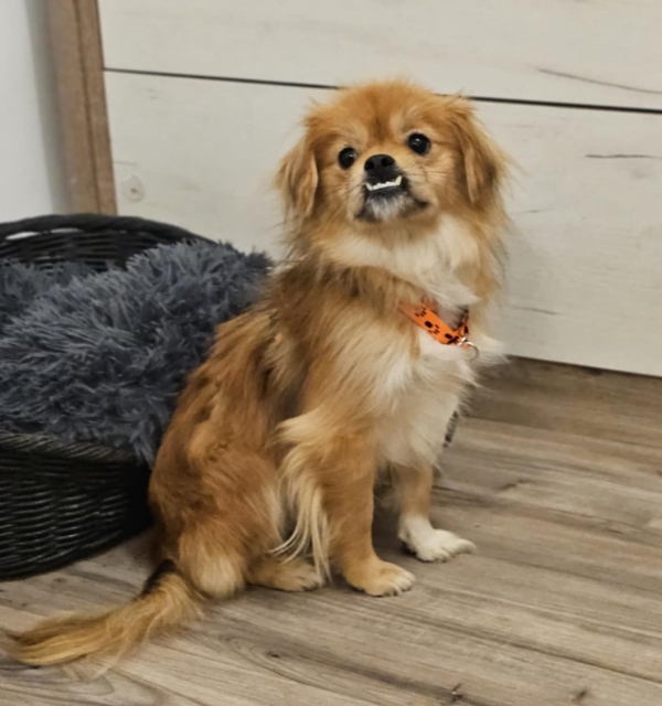 Rubino, Rüde, Tibet Spaniel Mischling, geboren ca. 20. April 2024 (von einem ungarischen Tierarzt geschätzt), kastriert, Schulterhöhe: ca. 33 cm und ca. z.Z. 6,5 Kilo, Vermittlung zu Katzen: ja, wenn diese das Leben mit Hunden kennen.