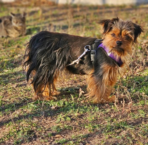 Chipsa, Hündin, Yorkshire Terrier Mischling, geboren ca. 15. Mai 2022 (von einem ungarischen Tierarzt geschätzt), reist kastriert, Schulterhöhe: ca. 28 cm und ca. z.Z. 4-5 Kilo (Hals: 22-26 cm, Brust: 43-47 cm), Vermittlung zu Katzen: ja, wenn diese das Leben mit Hunden kennen. Auf Wunsch wird auch extra nochmals getestet, nur eine Garantie gibt es nicht.