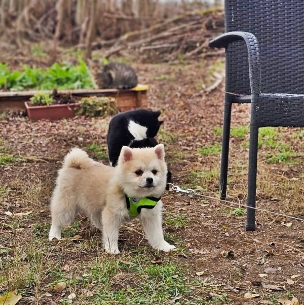 Bangsi ist verspielt, energiegeladen und voller Lebensfreude, er mag es, mit den Hunden zu tollen und die kleine Welt um ihn herum zu erkunden.