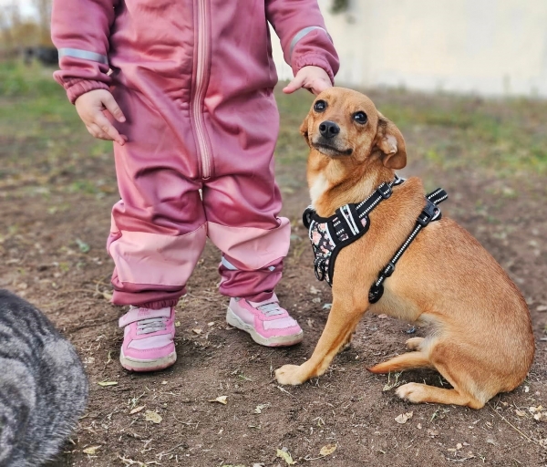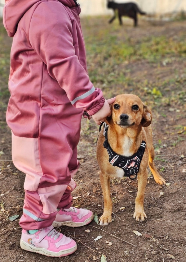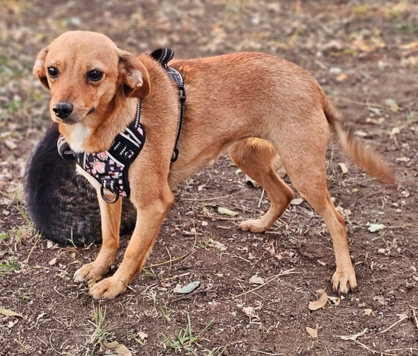 Libella, Hündin, Mischling, geboren ca. 03. Juni 2023 (von einem ungarischen Tierarzt geschätzt), reist kastriert, Schulterhöhe: ca. 36 cm und ca. z.Z. 6,5-7,5 Kilo (Hals: 28-32 cm, Brust: 49-54 cm), Vermittlung zu Katzen: ja, wenn diese das Leben mit Hunden kennen. Auf Wunsch wird auch extra nochmals getestet, nur eine Garantie gibt es nicht.
