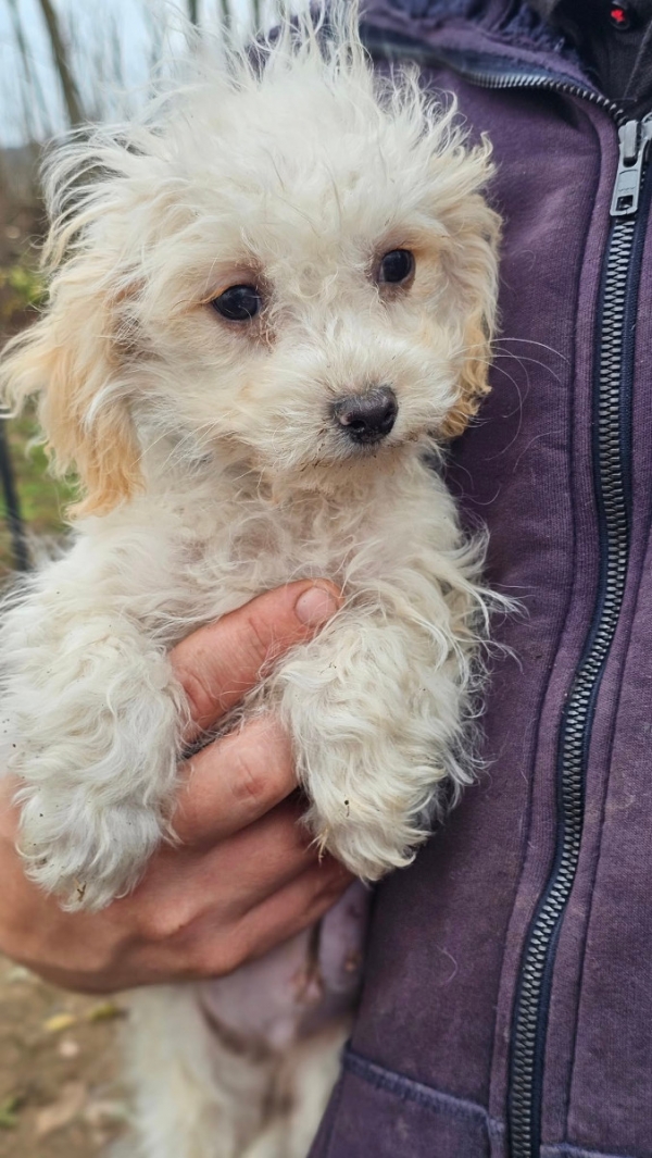 Arion, Rüde, Havaneser Mischling, geboren ca. 10. Juni 2025, reist unkastriert, Schulterhöhe: z.Z. ca. 25-27 cm und ca. z.Z. 1,9-2,7 Kilo (Hals: 19-23 cm, Brust: 30-34 cm), Vermittlung zu Katzen: ja, wenn diese das Leben mit Hunden kennen. Auf Wunsch wird auch extra nochmals getestet, nur eine Garantie gibt es nicht.