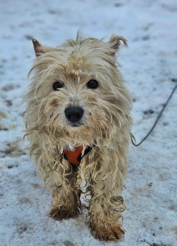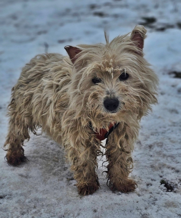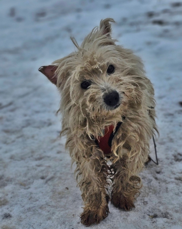 Leslie, Hündin, West Highland White Terrier Mischling, geboren ca. 16. Februar 2023 (von einem ungarischen Tierarzt geschätzt), reist kastriert, Schulterhöhe: ca. 31 cm und ca. z.Z. 5,5-6,5 Kilo (Hals: 29-33 cm, Brust: 46-50 cm), Vermittlung zu Katzen: ja, wenn diese das Leben mit Hunden kennen. Auf Wunsch wird auch extra nochmals getestet, nur eine Garantie gibt es nicht.