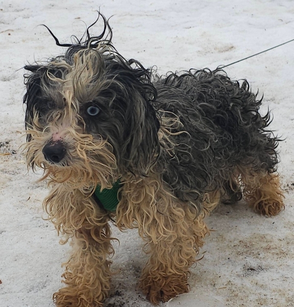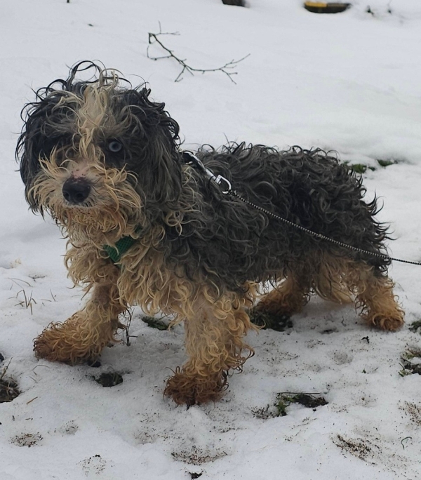 Kurzinfo: Das Fell ist total verfilzt und wird vor der Ausreise ganz abgeschoren werden müssen.