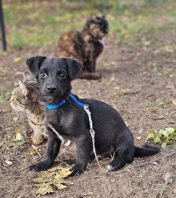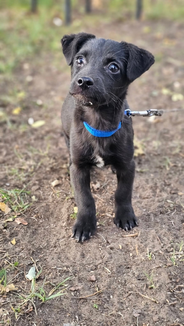 Escuro, Rüde, Mischling, geboren ca. 01. Juli 2025 (von einem ungarischen Tierarzt geschätzt), reist unkastriert, Schulterhöhe: z.Z. ca. 21 cm und ca. z.Z. 2-3 Kilo (Hals: 18-23 cm, Brust: 32-37 cm), Vermittlung zu Katzen: ja, wenn diese das Leben mit Hunden kennen. Auf Wunsch wird auch extra nochmals getestet, nur eine Garantie gibt es nicht.