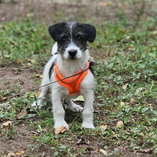 Moina, Hündin, Jack Russell Terrier Mischling, geboren ca. 18. Juni 2025 (von einem ungarischen Tierarzt geschätzt), reist unkastriert, Schulterhöhe: ca. 22 cm und ca. z.Z. 2-3 Kilo (Hals: 19-23 cm, Brust: 33-35 cm), Vermittlung zu Katzen: ja, wenn diese das Leben mit Hunden kennen. Auf Wunsch wird auch extra nochmals getestet, nur eine Garantie gibt es nicht.