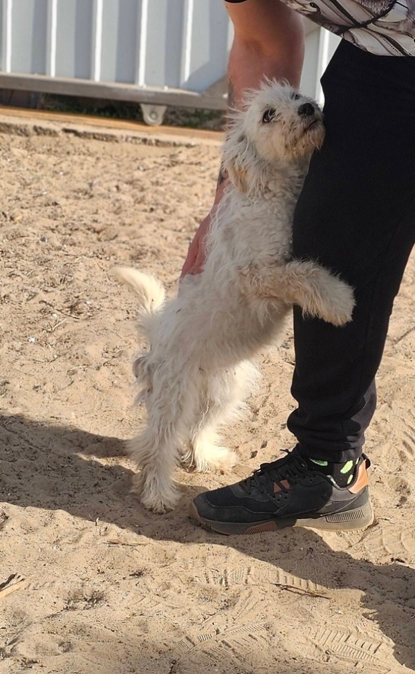 Flake, Hündin, Puli Mischling, geboren ca. 15. Dezember 2025 (von einem ungarischen Tierarzt geschätzt), reist unkastriert, Schulterhöhe: z.Z. ca. 28 cm und ca. z.Z. 3,5-4,5 Kilo (Hals: 24-28 cm, Brust: 39-43 cm), Vermittlung zu Katzen: ja, wenn diese das Leben mit Hunden kennen. Auf Wunsch wird auch extra nochmals getestet, nur eine Garantie gibt es nicht.