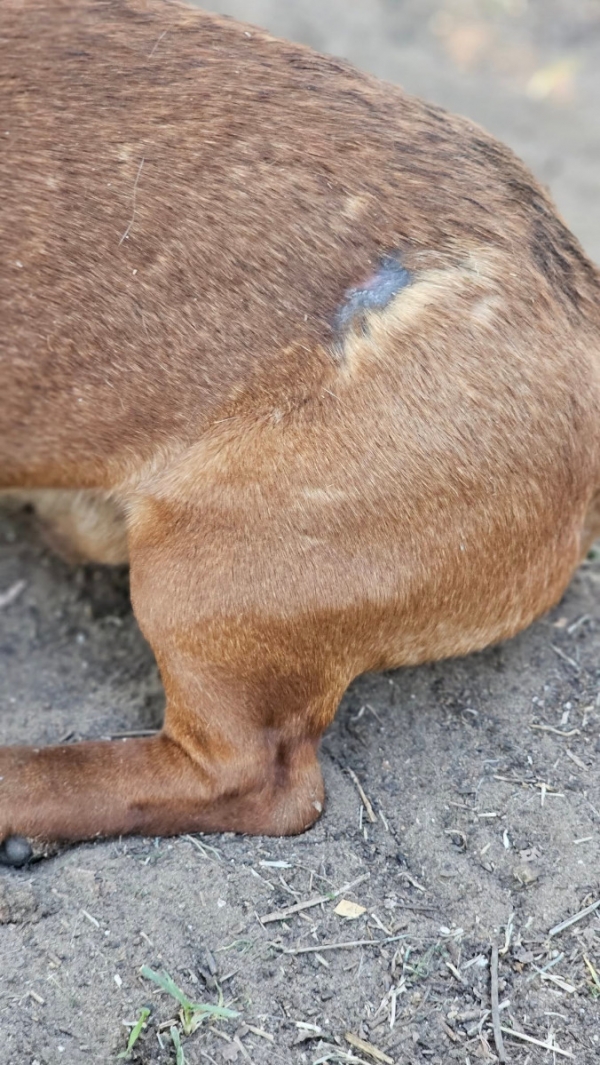 Kurzinfo: Jeppe hat eine alte, gut verheilte Verletzung (Cut), wo kein Fell mehr wächst, siehe Foto!