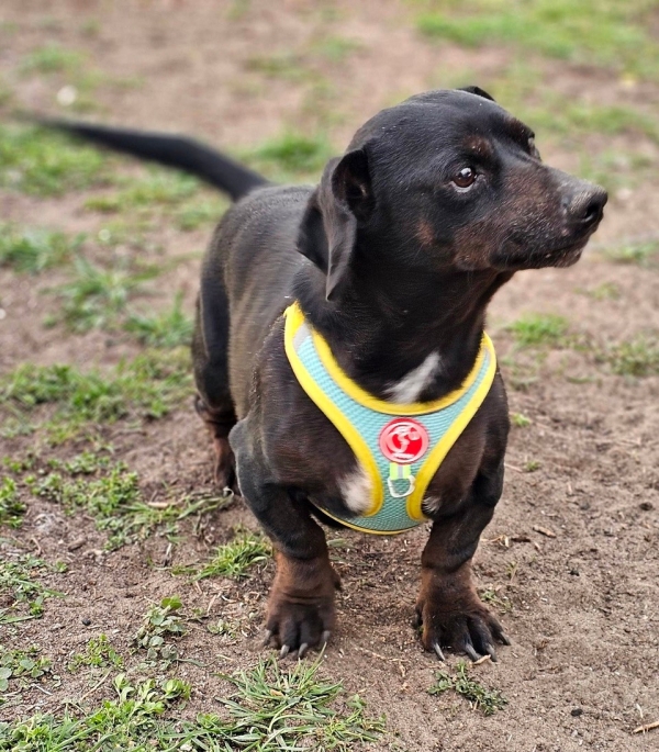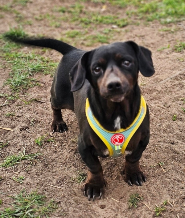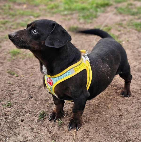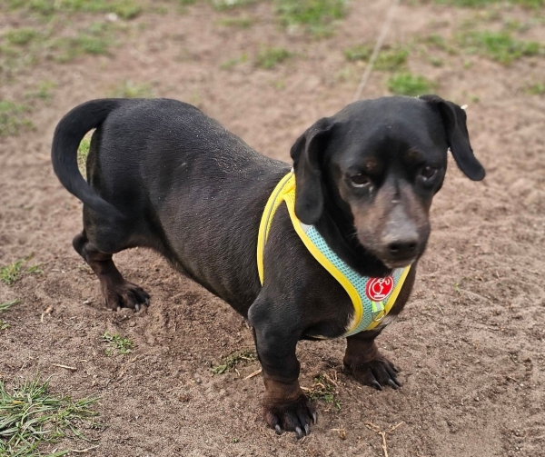 Mandi ist ein Dackel mit dem Herz aus Gold und im Moment leider sehr übergewichtig.