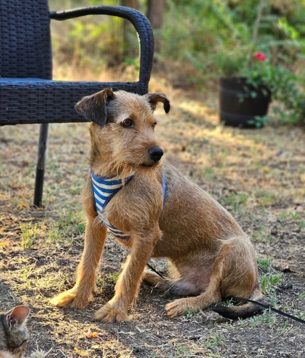 Rastie, Rüde, Terrier Mischling, geboren ca. 10. April 2022 (von einem ungarischen Tierarzt geschätzt), kastriert, Schulterhöhe: ca. 40 cm und ca. z.Z. 9-10 Kilo (Hals: 31-35 cm, Brust: 52-57 cm), Vermittlung zu Katzen: ja, wenn diese das Leben mit Hunden kennen. Auf Wunsch wird auch extra nochmals getestet, nur eine Garantie gibt es nicht.