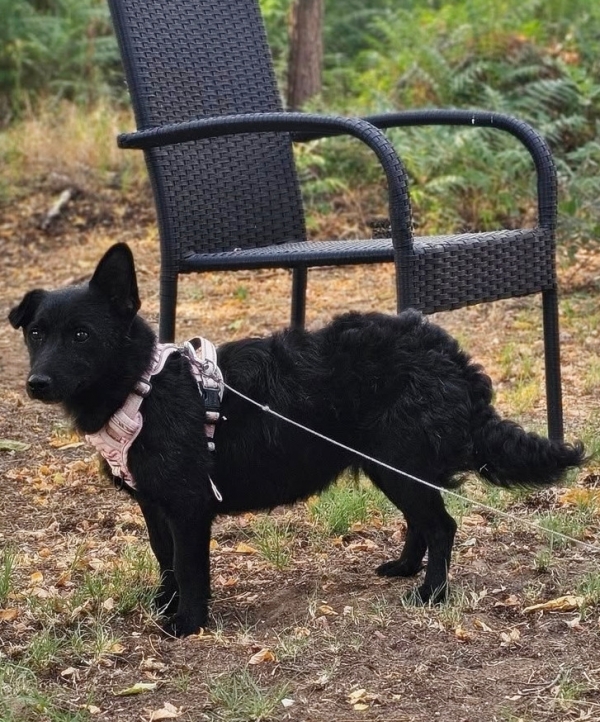 Cora, Hündin, Mudi Mischling, geboren ca. 13. März 2019 (von einem ungarischen Tierarzt geschätzt), reist kastriert, Schulterhöhe: ca. 37 cm und ca. z.Z. 8,5-9,5 Kilo (Hals: 31-34 cm, Brust: 53-57 cm), Vermittlung zu Katzen: ja, wenn diese das Leben mit Hunden kennen. Auf Wunsch wird auch extra nochmals getestet, nur eine Garantie gibt es nicht.