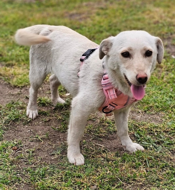Kaydee, Hündin, Mischling, geboren ca. 01. Januar 2024 (von einem ungarischen Tierarzt geschätzt), kastriert, Schulterhöhe: ca. 36 cm und ca. z.Z. 7,5-8,5 Kilo (Hals: 27-32 cm, Brust: 48-54 cm), Vermittlung zu Katzen: ja, wenn diese das Leben mit Hunden kennen. Auf Wunsch wird auch extra nochmals getestet, nur eine Garantie gibt es nicht.