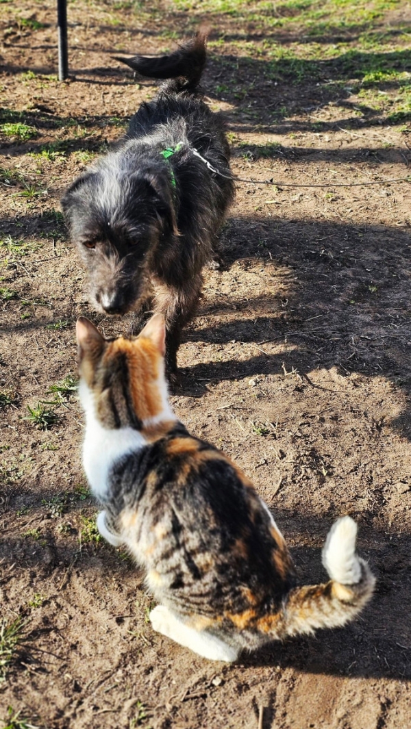 Sie ist eine junge, freundliche Hündin, die sich sowohl mit anderen Hunden, als auch mit Katzen bestens versteht.