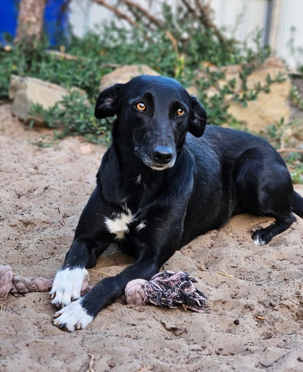 Mit allen Hunden ist sie umgänglich und sucht nach quirligen Hundekumpels zum Spielen, rennen und Spaß haben.